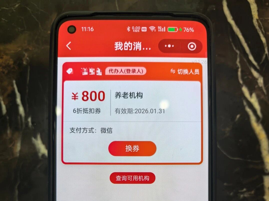 “没想到这么顺利,轻轻一点就领到了800元抵扣券并完成了核销!”1月26日上午10时许,市社会福利中心(金泰园)收费处前,在住老人家属谢女士看着缴费系统上更新的金额,难掩欣喜。作为宁德国投下属企业福建省金泰康乐养老服务有限公司(以下简称“金泰园”)首位享受养老服务消费补贴政策的家属,她现场完成缴费并成功核销,标志着全国范围内实施的向中度以上失能老年人发放养老服务消费补贴政策在金泰园正式落地。