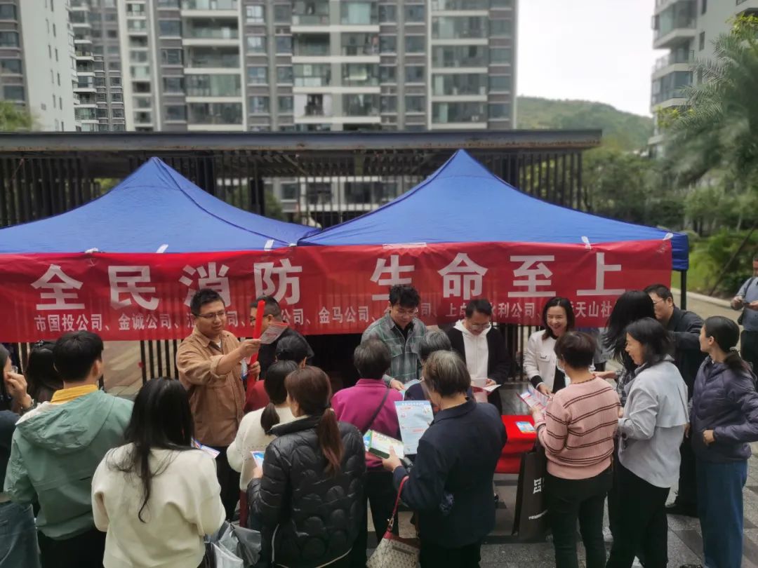 为深入学习贯彻习近平总书记关于安全生产的重要论述精神,强化公司全体职工和社区居民的安全防范意识,加深对消防安全文化的理解,提升自救能力与应急处置水平,11月19日,H动画 携下属金诚公司、汇融投资集团、汇聚公司、金马公司、金澳公司、上白石水利开发公司,联合东侨天山社区,共同开展“全民消防 生命至上”第33个全国消防日消防安全知识宣传——消防宣传进社区活动。