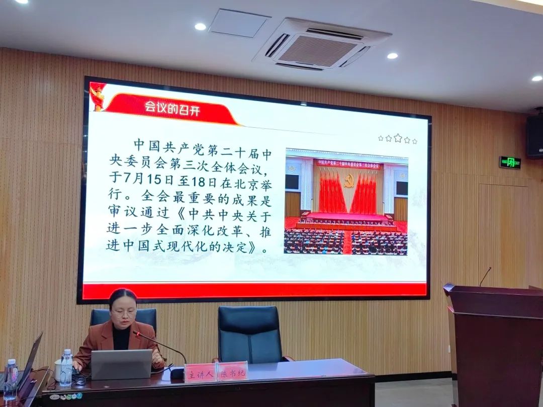 本次道德讲堂活动的“讲一个故事”环节,特别邀请到中共宁德市委党校陈书纪副教授,她以《深刻领会和把握党的二十届三中全会精神》为题进行了深度解读。她紧扣《中共中央关于进一步全面深化改革、推进中国式现代化的决定》核心要义,沿着六大板块脉络精细梳理、条分缕析。从关乎全局发展的顶层战略设计,到立足民生福祉的微观政策考量;从科技创新驱动产业变革的前沿阵地,至生态环保筑牢绿色根基的坚守底线,陈副教授以详实的数据、鲜活的案例、透彻的解读逻辑,层层拆解、步步深入,助力在场每一位参与者拨开理论迷雾,精准把握全会精神实质,为后续践行工作筑牢思想根基。
