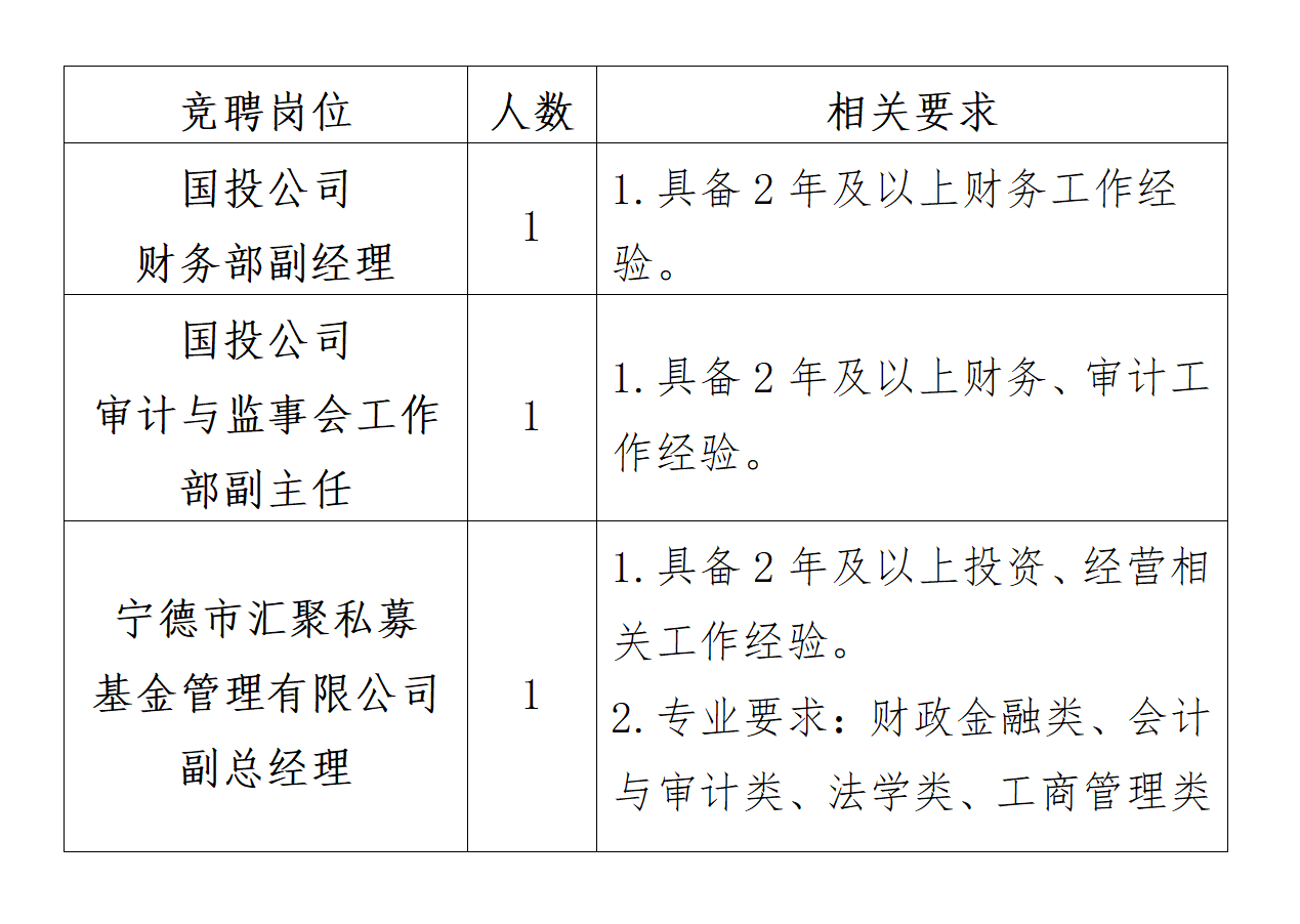 按照“国企改革三年行动”有关要求,根据《党政领导干部选拔任用工作条例》《宁德市国资委出资企业和闽东电力中层管理人员选拔任用管理办法(试行)》(宁国资党委〔2021〕57号)《宁德市属国有企业经营管理人员市场化选聘和竞聘上岗实施方案》(宁国资党委〔2019〕30号)等有关规定,经研究,采取竞争上岗方式公开选拔三位中层管理人员,现将有关事项公告如下: